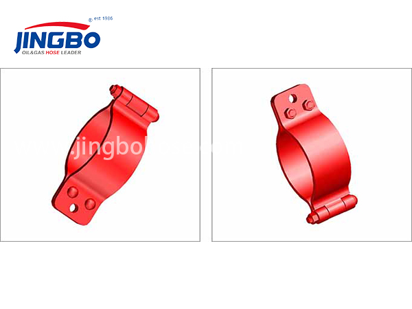 This products and existing technology compared to, the end of hanging card comparison smooth, can avoid the end insert close to the other Hose makes transport more security; due to the Oilfield Hose hanging card of end for axis hinge connection, through another end by of connection screw rod can makes two a semi-circular card Board will pipeline card of more tight, not only can avoid connection screw rod in transport in the loose of problem, and installed more convenient, and structure more simple.